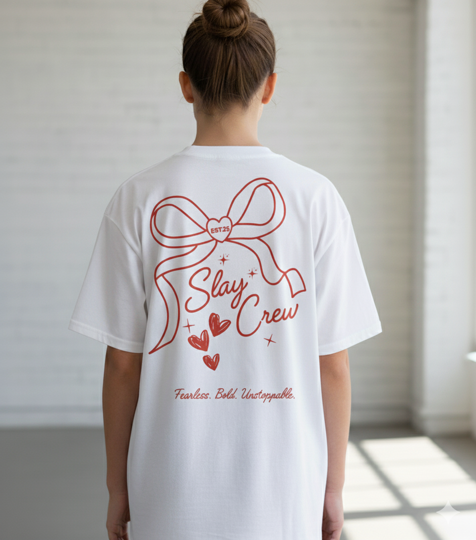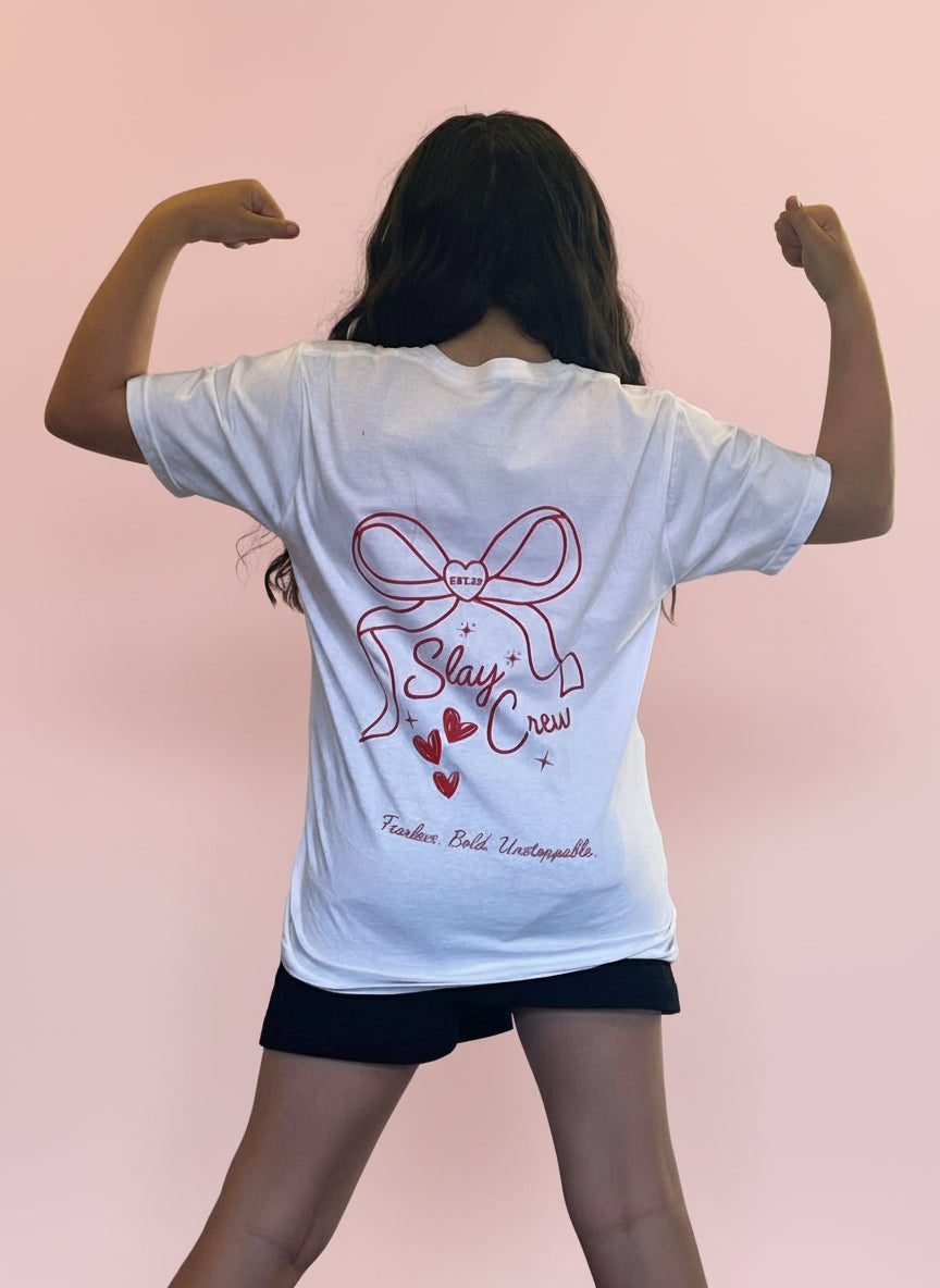The Fearless Bow Tee blends sweet style with unstoppable energy. Made from our lightest cotton tee yet for an easy, everyday feel. Featuring our new red back print that turns heads and reminds the world: you can wear bows and still be the boss.