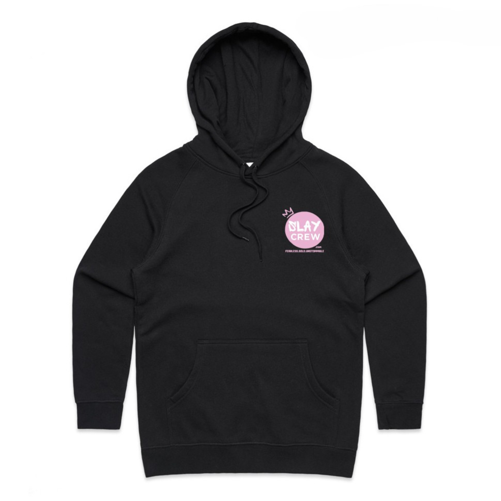Designed for you to own your confidence and rule your world, this black hoodie features a bold pink graphic with a crown, because, duh, you’re royalty!