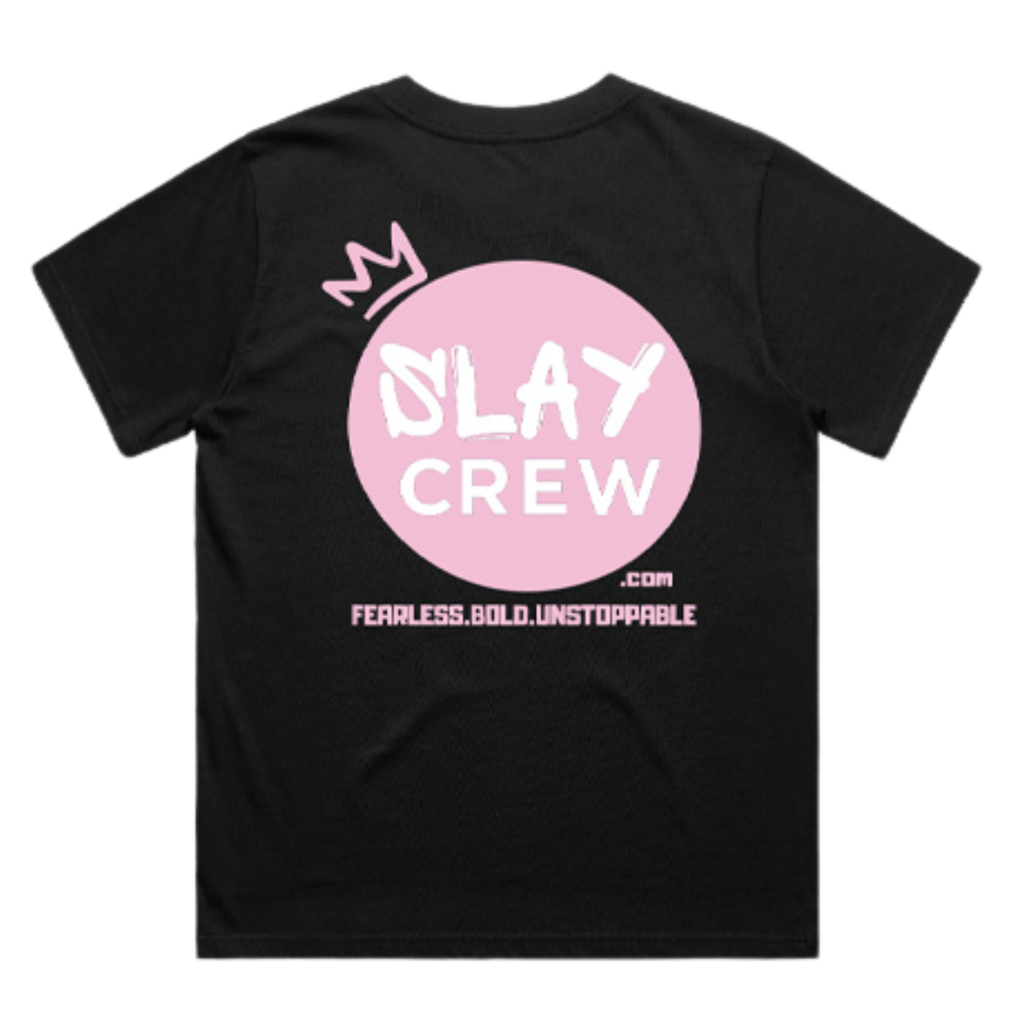 Ready to level up your style? The Slay Crew Tee is more than just a tee is more than just a t-shirt - it's a whole vibe. Designed for you to own your confidence and rule your world, this crisp white tee features a bold black graphic with a crown because, duh, you're a queen!